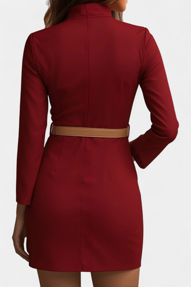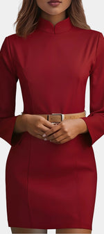 Vigdis Robe Élégante à Col Mandarin avec Ceinture