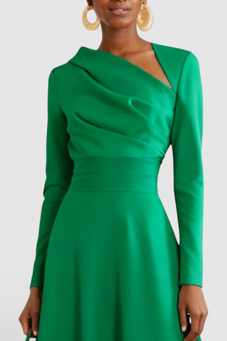 Wanda Robe Midi Asymétrique à Manches Longues et Coupe Trapèze