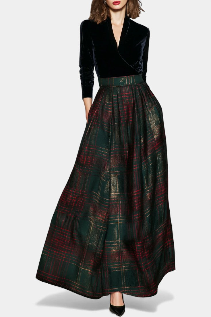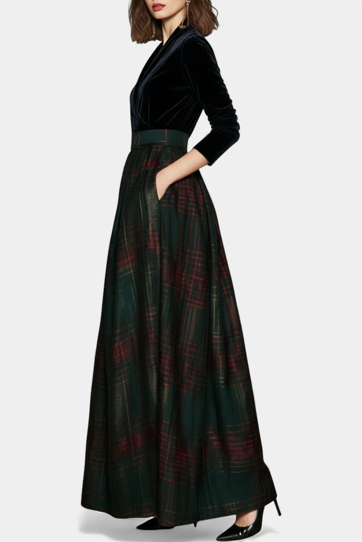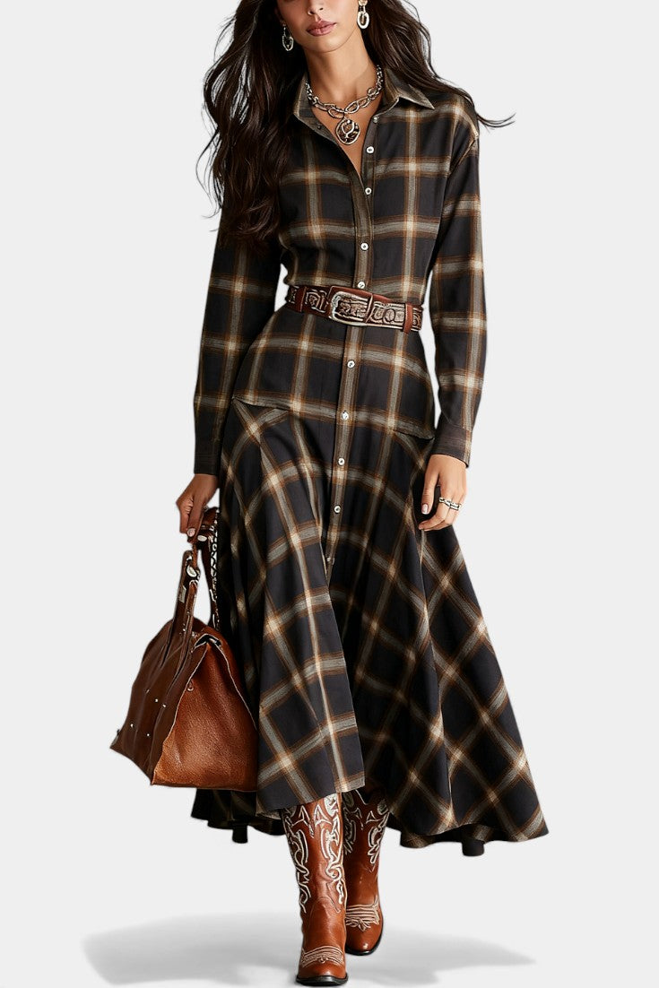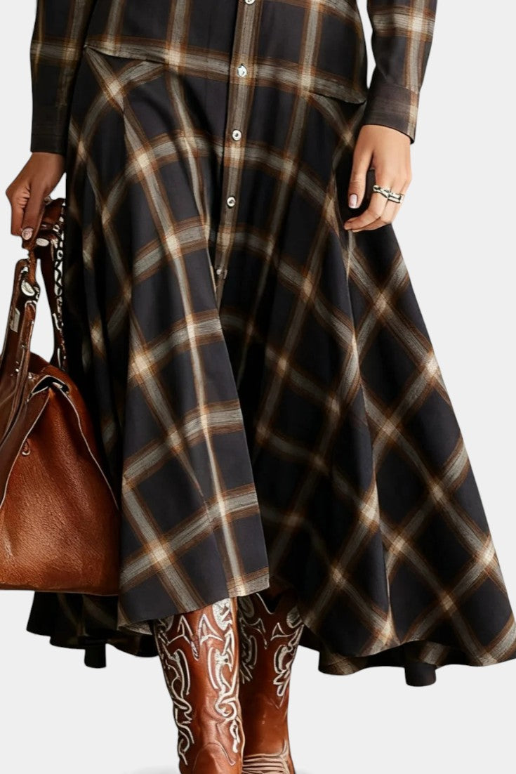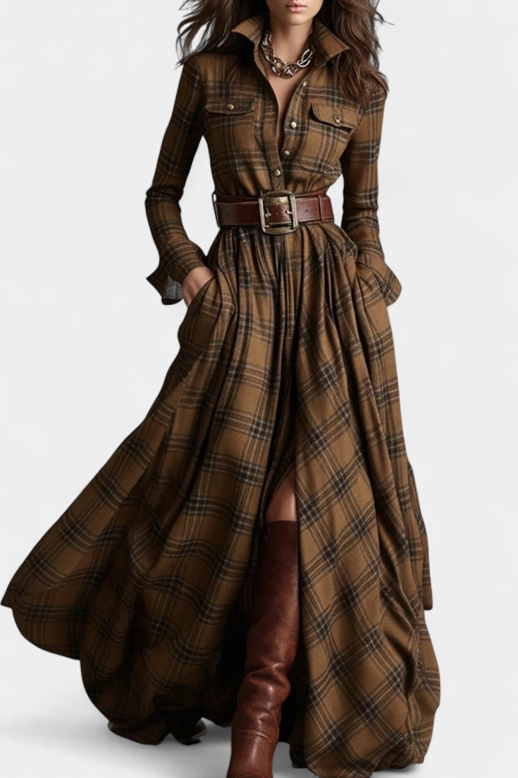 Marlis Robe Longue Élégante à Carreaux Vintage