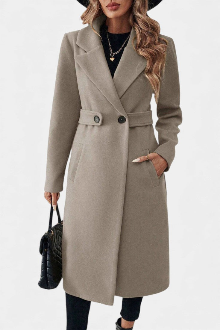 Camile Manteau Long Oversized à Double Boutonnage et Col à Revers