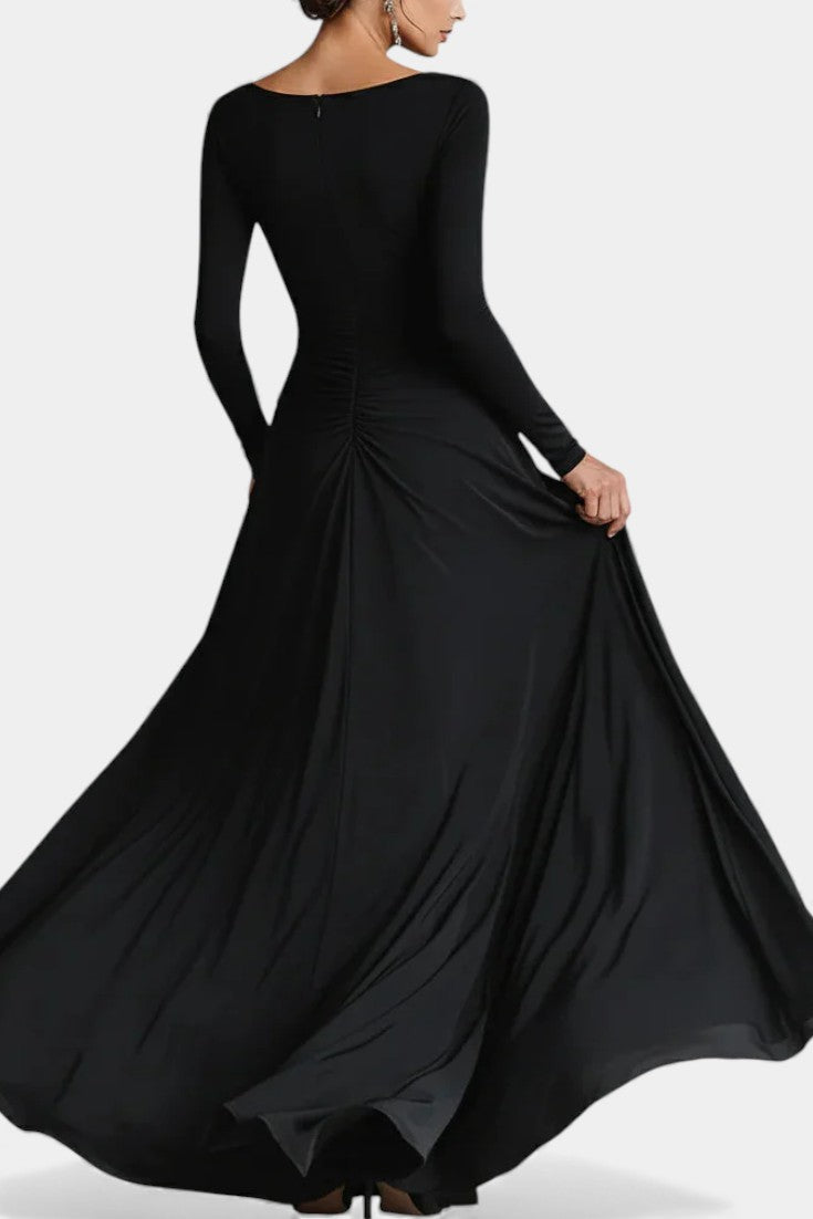 Alizée Robe Longue en Velours à Col en V et Coupe Évasée
