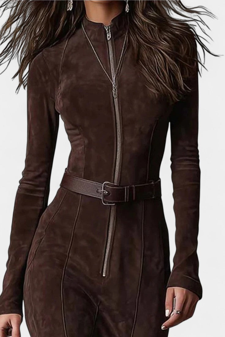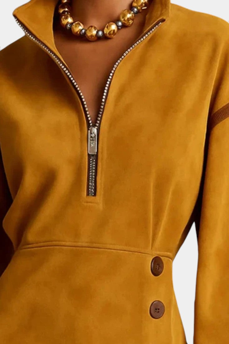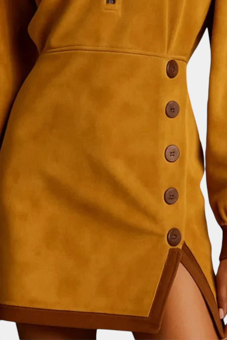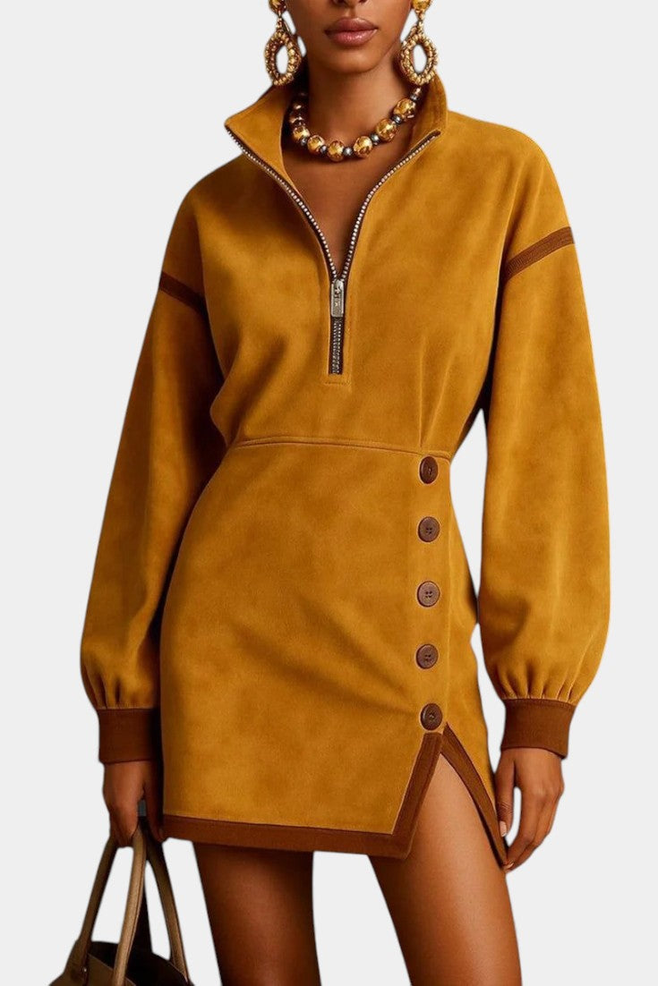 Roselinea Robe Mini en Suédine Gingembre à Col Montant Demi-Zip