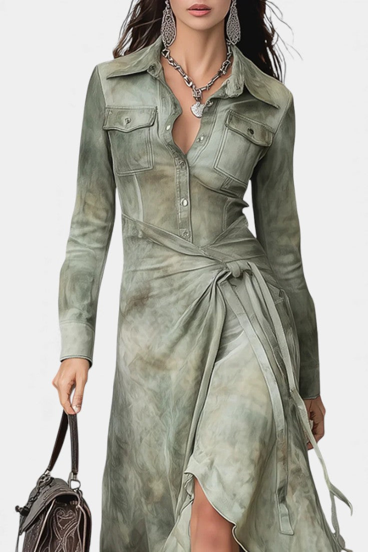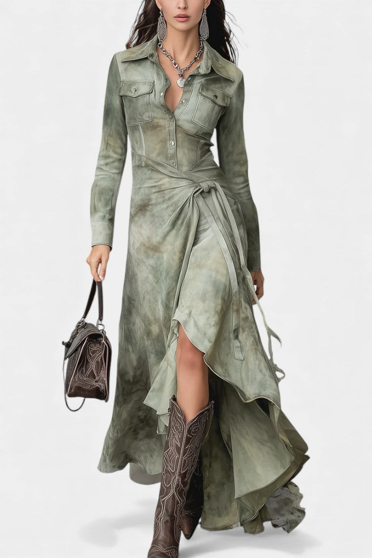 Sigrid Robe Maxi Slim en Suédine Tie-Dye Vert Sauge