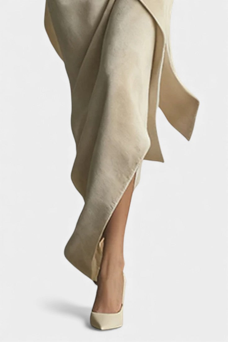 Natalina Ensemble Tailleur Écru Élégant à Jupe Longue Croisée
