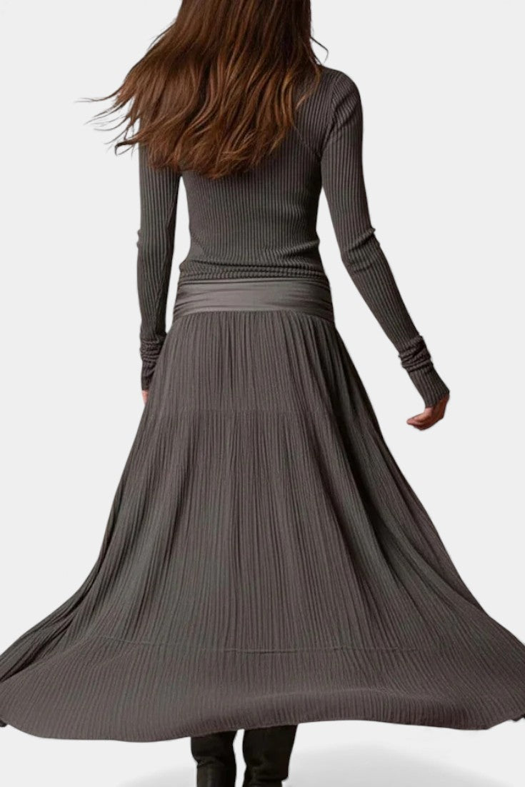 Fabia Ensemble Col Roulé Marron Foncé et Jupe en Velours Côtelé