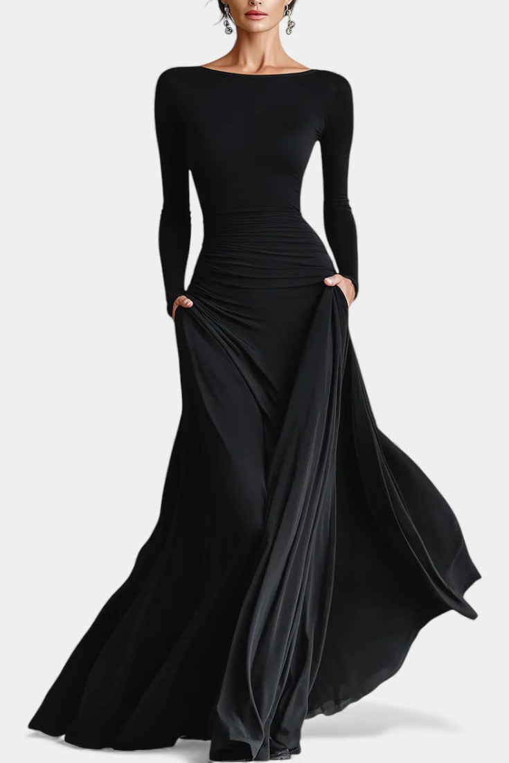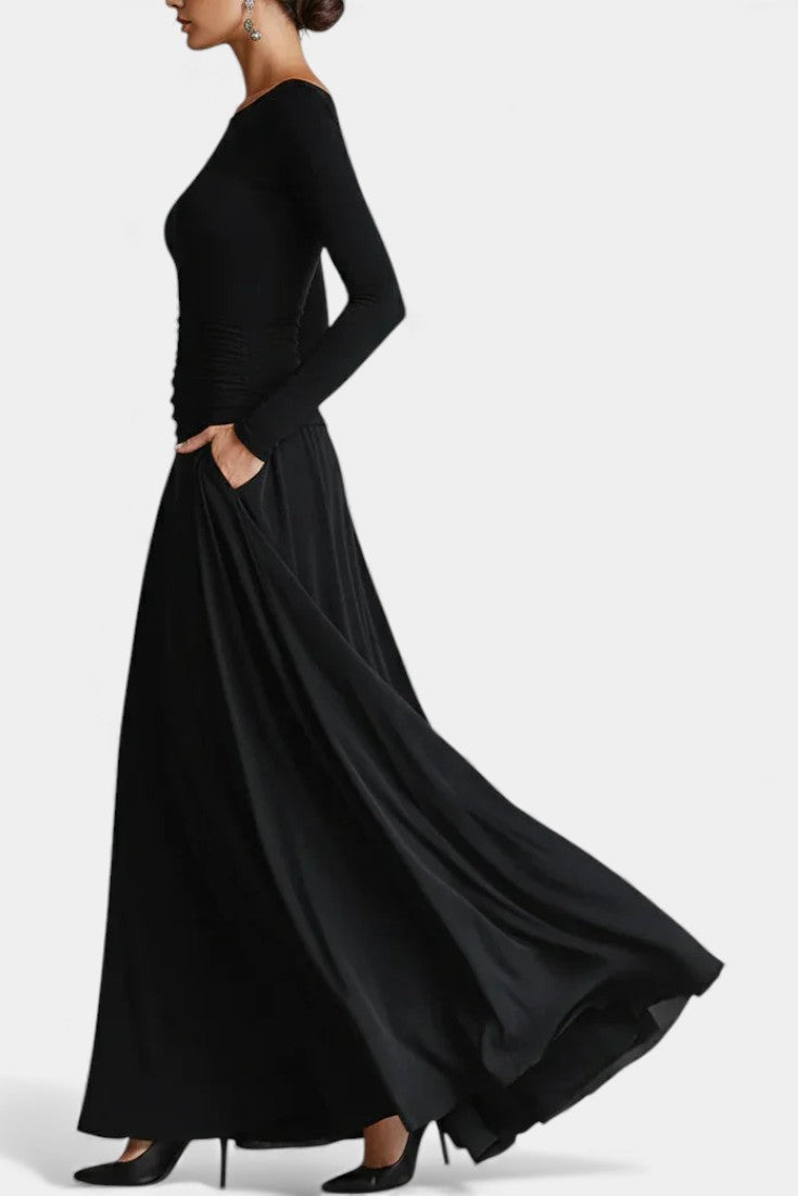 Stelline Robe Longue Plissée en Crêpe Moderne Noire