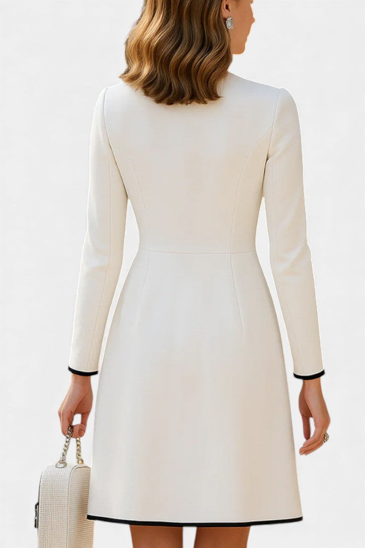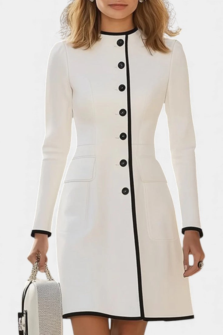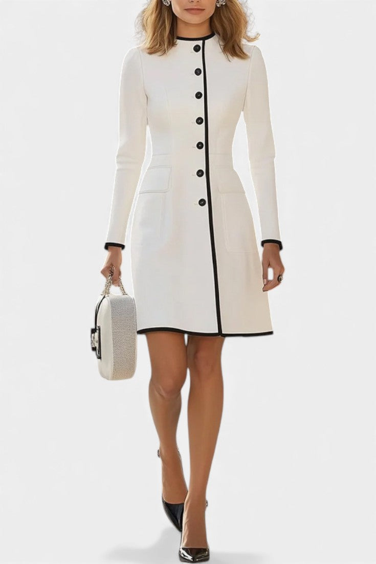 Avyana Manteau Long Blanc Chic avec Détails Contrastés
