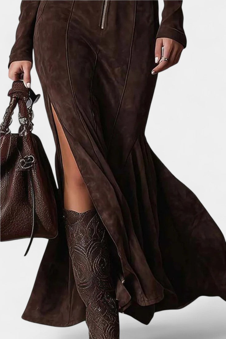 Huguette Robe Midi Fendue en Suédine Synthétique Style Western Rétro