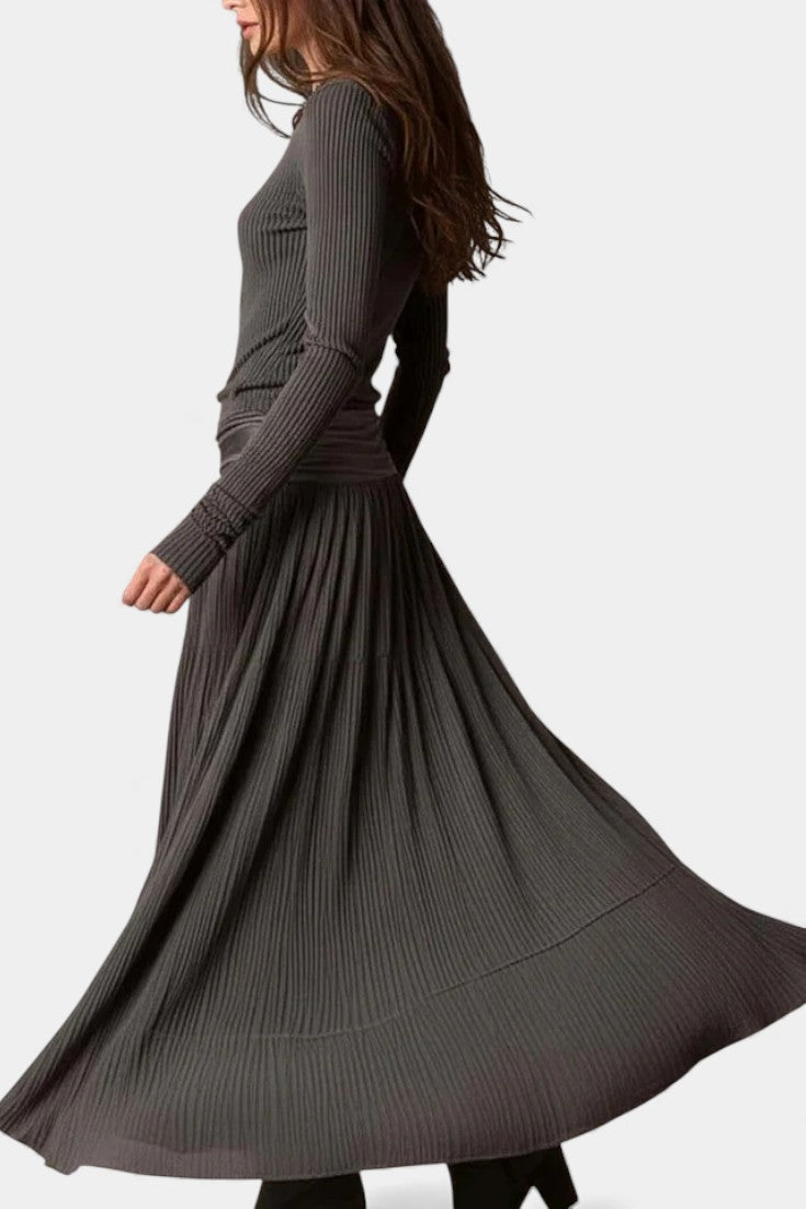 Armelle Ensemble Slim-Fit en Jersey Côtelé Gris Charbon Rétro