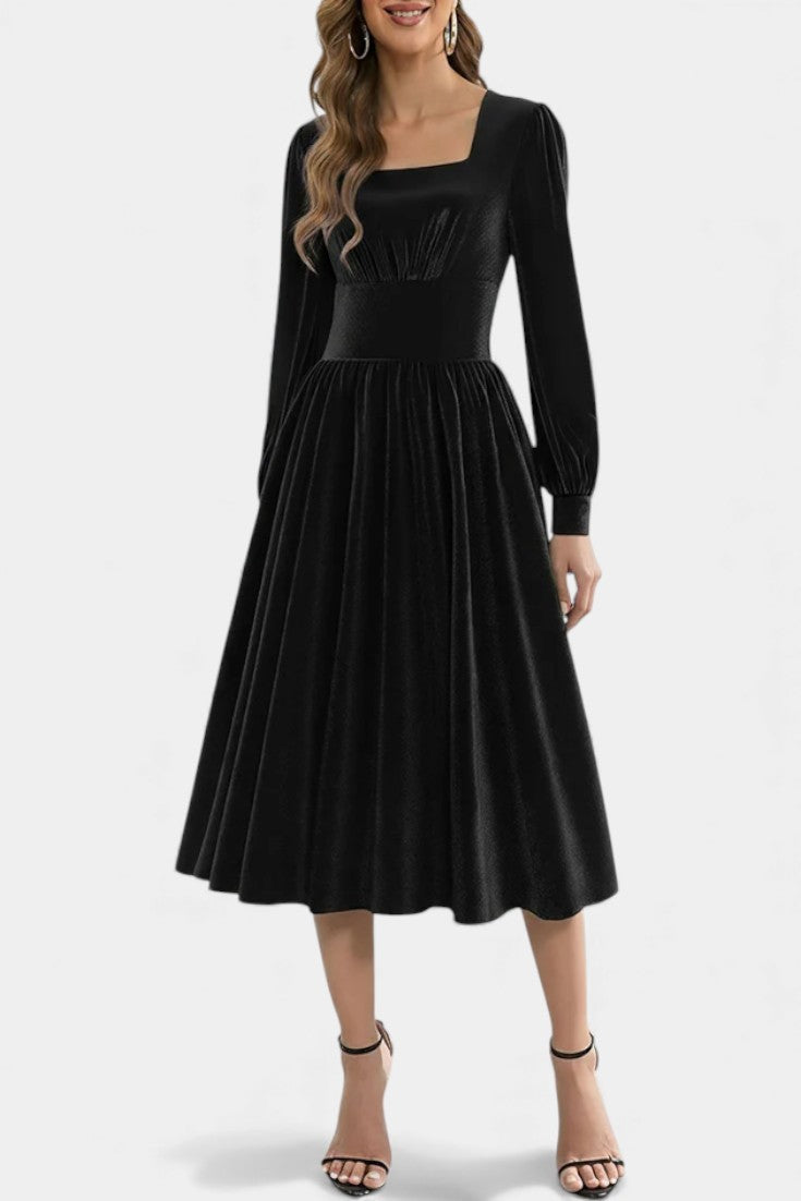 Cordélia Robe Midi de Noël en Velours à Encolure Carrée