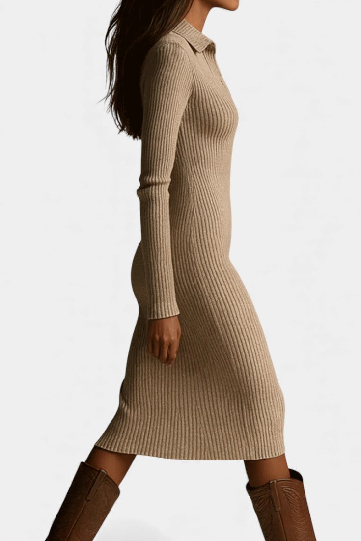 Tayma Robe Midi Ajustée à Col Revers Élégante et Structurée