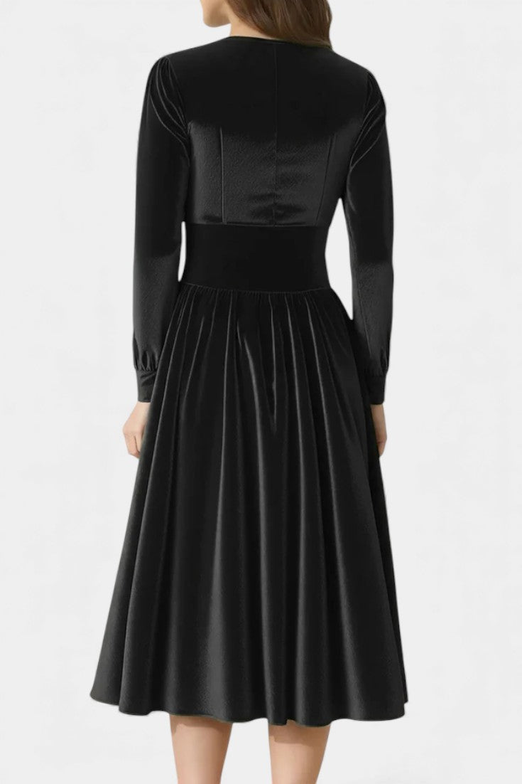 Athelina Robe Midi Noire Style Portefeuille Intemporelle