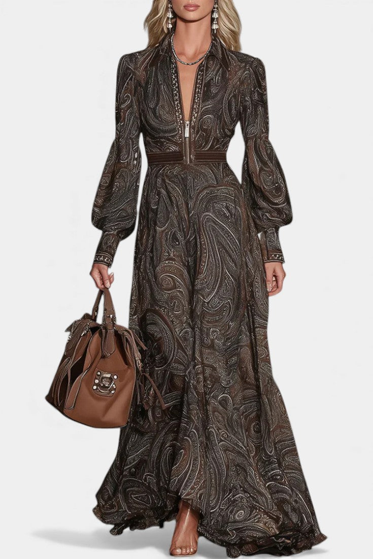 Clarysse Robe Maxi Vintage Paisley à Zip