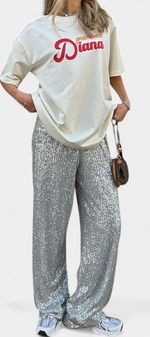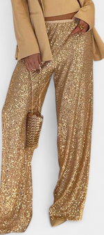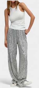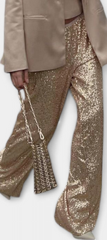 Rayonnez de glamour et de confiance avec Elva : un pantalon à paillettes conçu pour briller de mille feux. Sa coupe ample et sa taille haute mettent en valeur la silhouette avec élégance, tandis que la finition brillante transforme n'importe quel look en une déclaration inoubliable. Parfaits pour les soirées, les célébrations ou simplement lorsque vous souhaitez vous démarquer.