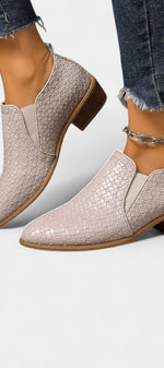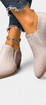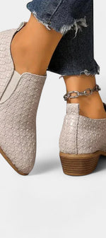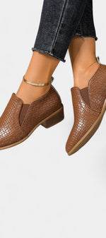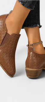Un design qui allie hauteur et confort sans effort. Evran se distingue par un talon en bloc résistant qui offre stabilité à chaque pas, accompagné d'une semelle orthopédique rembourrée qui réduit la pression et apporte un soutien durable. Sa silhouette élégante et polyvalente en fait un basique qui s'associe aussi bien à des tenues formelles qu'informelles.