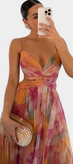 Romantique, légère et avec une présence naturelle. La robe Ingrid éblouit avec son imprimé floral vibrant et sa silhouette fluide, tandis que le décolleté en V flatte et allonge subtilement. Idéale pour les mariages, les célébrations spéciales ou simplement pour vous sentir lumineuse et élégante à tout moment.