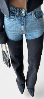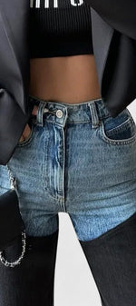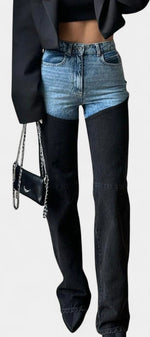 Mijie Jean Patchwork Taille Haute à Jambe Droite