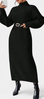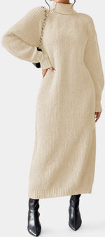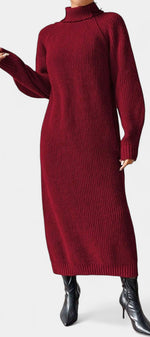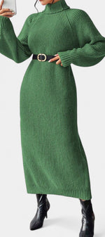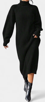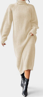 Liliriane Robe Pull Midi Tricotée à Col Roulé