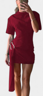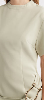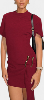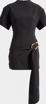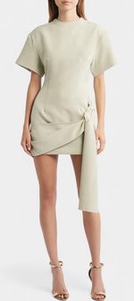 Minimalisme avec caractère et une touche sculpturale. La robe Coraline réinvente le mini avec des manches structurées, une ceinture drapée et une boucle dorée qui marque le point focal avec une attitude sophistiquée.
