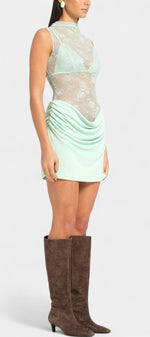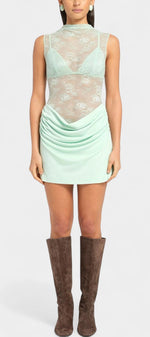 Un design sophistiqué qui allie délicatesse et modernité. Nottola se distingue par une dentelle travaillée qui apporte texture et distinction, tandis que sa silhouette mini sans manches assure fraîcheur et liberté de mouvement. Son ajustement cintré met en valeur la silhouette avec élégance, en faisant une pièce polyvalente qui passe sans effort d'un événement formel à une soirée chic.