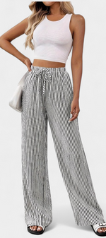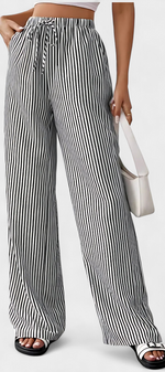 Pantalons Droits Légers à Rayures avec Taille Ajustable Sabrina
