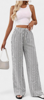Confortables, respirants et avec une touche décontractée, les pantalons Sabrina sont votre choix idéal pour les journées relaxées avec style. Leur coupe droite et leur taille à cordon garantissent une liberté de mouvement et un ajustement parfait, tandis que le design à rayures apporte une touche fraîche et intemporelle.