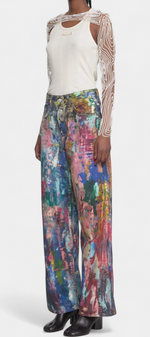 Rana Pantalon Large en Denim Imprimé Abstrait