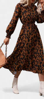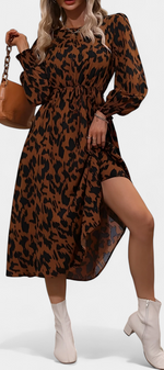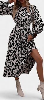 Une pièce audacieuse qui allie caractère et féminité. Nerin se distingue par un imprimé léopard moderne qui apporte une force visuelle, tandis que sa silhouette en A s'écoule naturellement. La ceinture ajustable définit la silhouette avec une finition flatteuse, et les manches longues équilibrent le design avec sobriété.