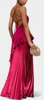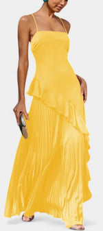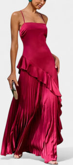 Un design moderne qui allie féminité et avant-garde. Paige éblouit avec son décolleté asymétrique et sa silhouette fluide, tandis que les délicats volants au bas ajoutent de la texture et du mouvement. Confectionnée dans un tissu léger, c'est le choix idéal pour les occasions où vous souhaitez vous démarquer avec sophistication et grâce.