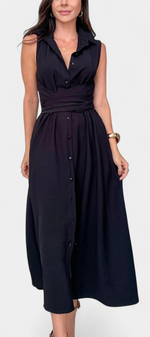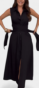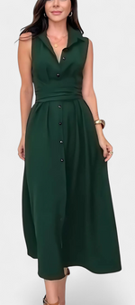 La robe Meryl apporte une structure moderne à l'élégance quotidienne. Conçue avec un col à revers défini, un devant classique à boutons et un nœud qui cinte la taille, elle offre une silhouette flatteuse avec une allure soignée—idéale pour les journées de travail, les déjeuners ou les promenades en ville.