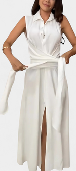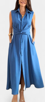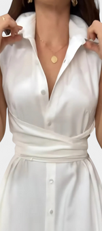 Meryl Robe Chemise à Ceinture Nouée et Col à Revers