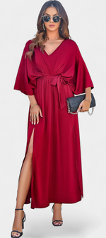 Milly Robe Fluide à Manches Chauve-souris et Fente Latérale