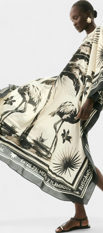 Détente avec une touche tropicale raffinée. Le kaftan Guadalupe s'écoule avec une élégance désinvolte grâce à sa coupe ample, sa chute fluide et son imprimé vibrant. Conçu pour vous accompagner du lever au coucher du soleil, cette robe est la définition du confort stylé pour les journées ensoleillées.