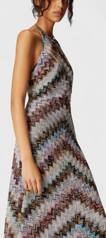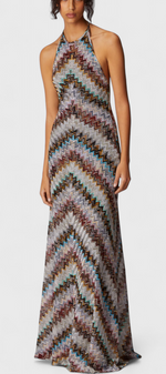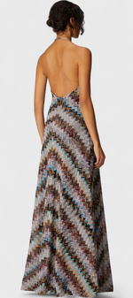 Melisa Robe Halter en Lamé à Motif Zigzag