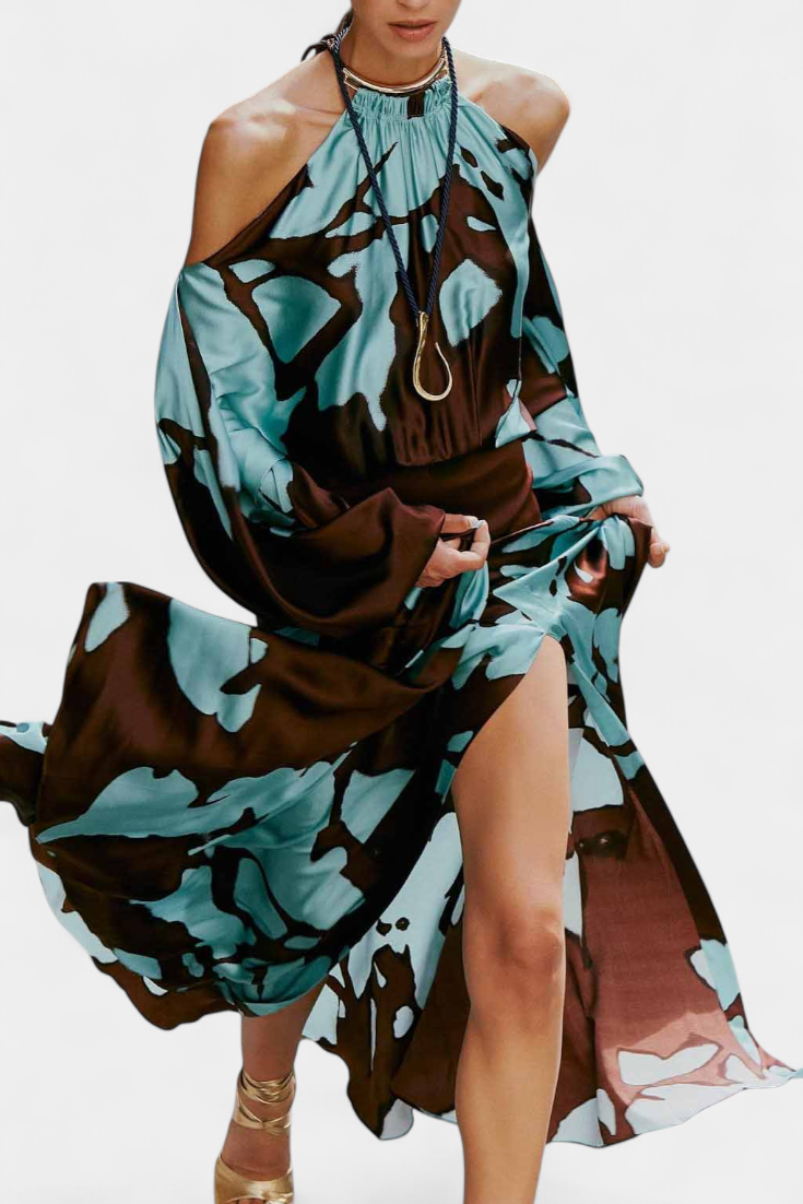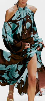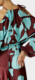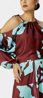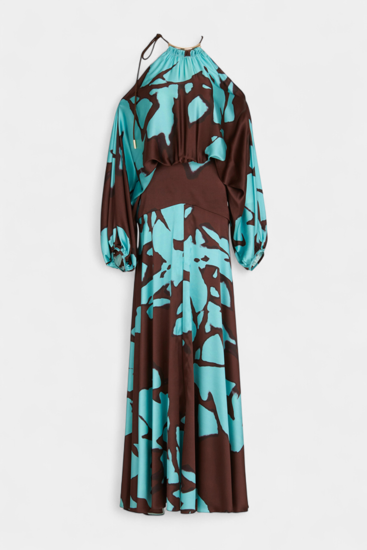 Élégance éthérée avec une touche contemporaine. La robe Monte se distingue par sa silhouette vaporeuse, ses manches avec ouvertures et un imprimé abstrait aux tons contrastés qui capture la lumière à chaque mouvement. Son décolleté avec détail métallique et sa taille cintrée créent une silhouette élancée avec caractère et sophistication.
