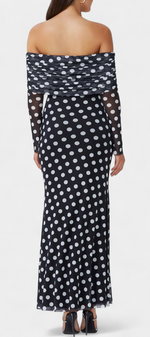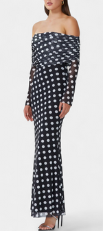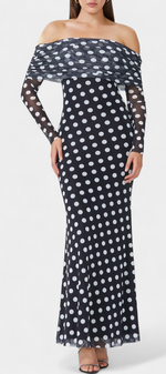 Elinda Robe Longue à Pois et Décolleté Off-Shoulder