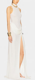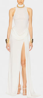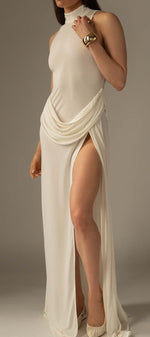 Une pièce qui irradie luxe et sophistication. Duchess se distingue par son design drapé qui apporte fluidité et élégance architecturale, tandis que la fente latérale met en valeur la silhouette avec une touche sensuelle et assurée. Conçue pour briller à chaque mouvement, c'est le choix parfait pour les moments où vous souhaitez attirer tous les regards.