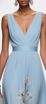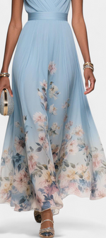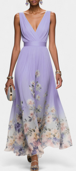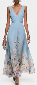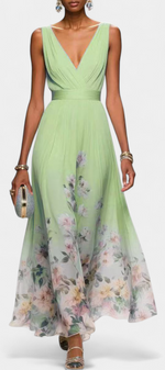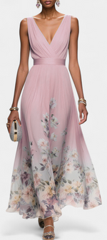 Sauline Robe Longue en Georgette Florale à Décolleté en V