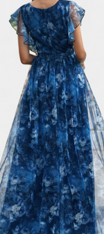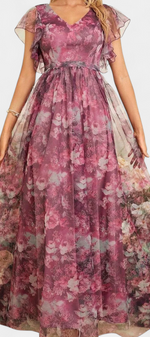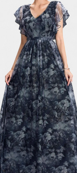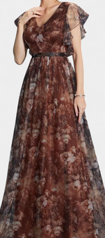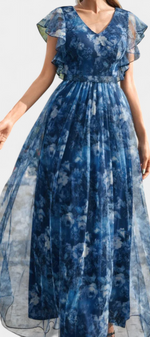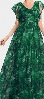 Mariana Robe en Chiffon à Décolleté V et Manches à Volants avec Imprimé Floral