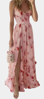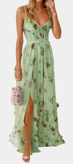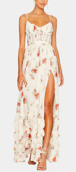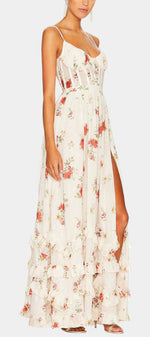 Luna Robe Corset à Imprimé Floral et Jupe Longue