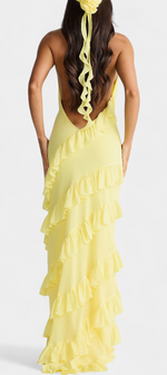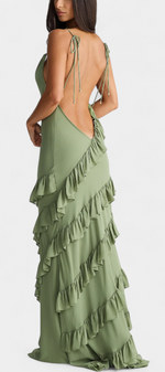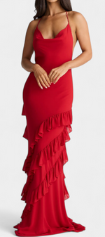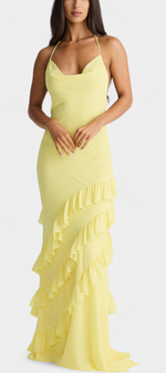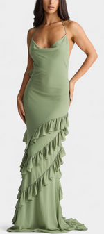Avec une allure romantique et captivante, la robe Padeline éblouit par sa silhouette fluide, son décolleté drapé et ses délicates bretelles fines qui se nouent sur les épaules. Les volants diagonaux parcourent la jupe, créant du mouvement et du drame, tandis que le dos nu ajoute une touche audacieuse et élégante. Une pièce conçue pour attirer les regards à chaque occasion spéciale.