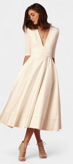 Un rendu très naturel et chic. La robe tombe parfaitement et donne une allure très élégante sans effort.
