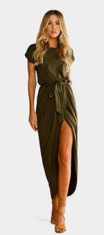Clarissa Robe Longue Enveloppante avec Fente Latérale