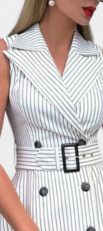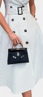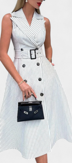 Fraîcheur structurée avec une touche classique. La robe Diana allie l'élégance d'une chemise à une coupe A-line flatteuse, idéale pour des looks d'été sophistiqués et confortables. Sa taille ajustable met en valeur la silhouette tandis que le motif à rayures apporte une allure intemporelle et raffinée.