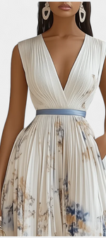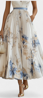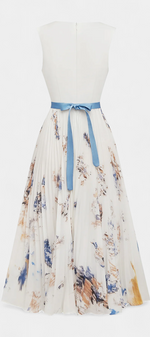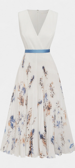 La robe Elise allie romantisme classique et fraîcheur moderne. Confectionnée en chiffon blanc avec imprimé floral, elle présente un décolleté en V flatteur, une silhouette en A et de délicats plis qui apportent texture et fluidité. La ceinture ajustable accentue la taille, tandis que la doublure complète et la fermeture à l'arrière garantissent confort et structure tout au long de la journée.