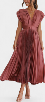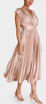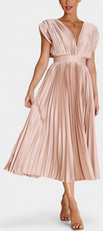 Mireia Robe à Décolleté Drapé en V et Jupe Plissée Fluide