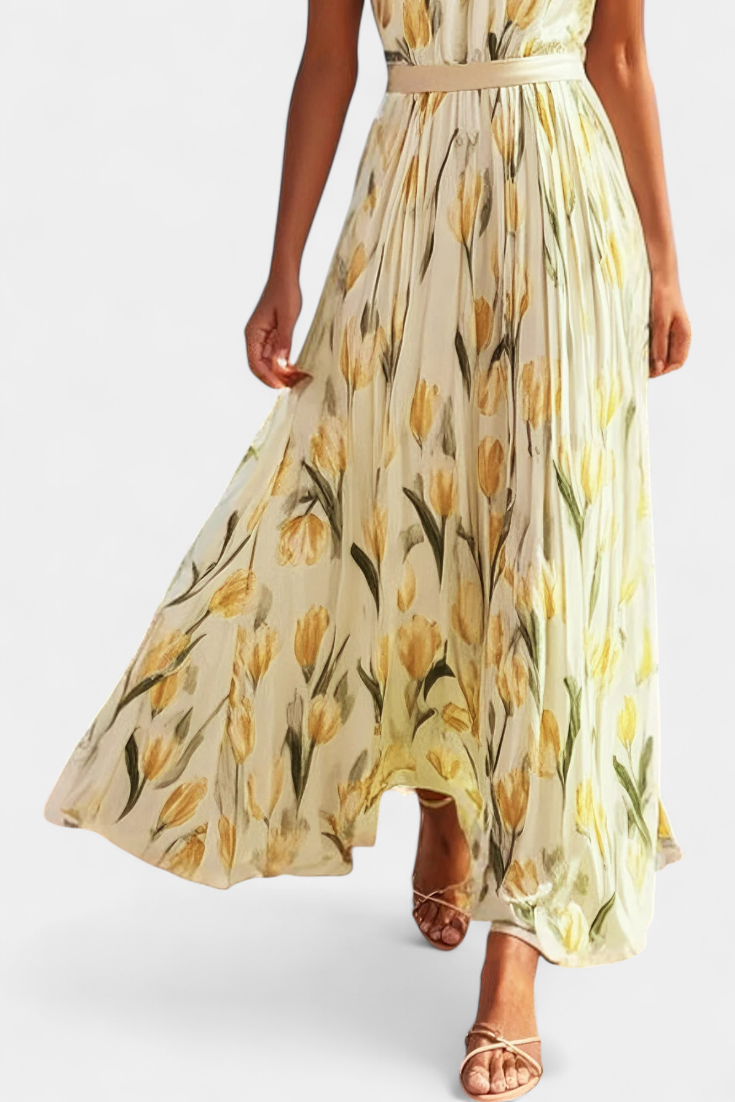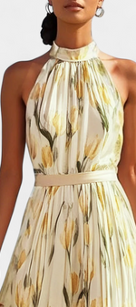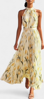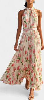 Raffinée et féminine, la robe Juliene combine un imprimé floral vibrant avec un design plissé qui apporte texture et mouvement. Sa coupe sans manches et son décolleté rond créent une silhouette légère et flatteuse, parfaite pour les journées ensoleillées et les occasions élégantes.