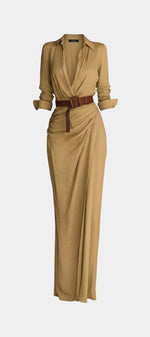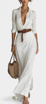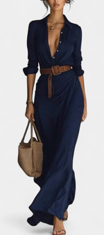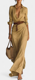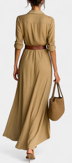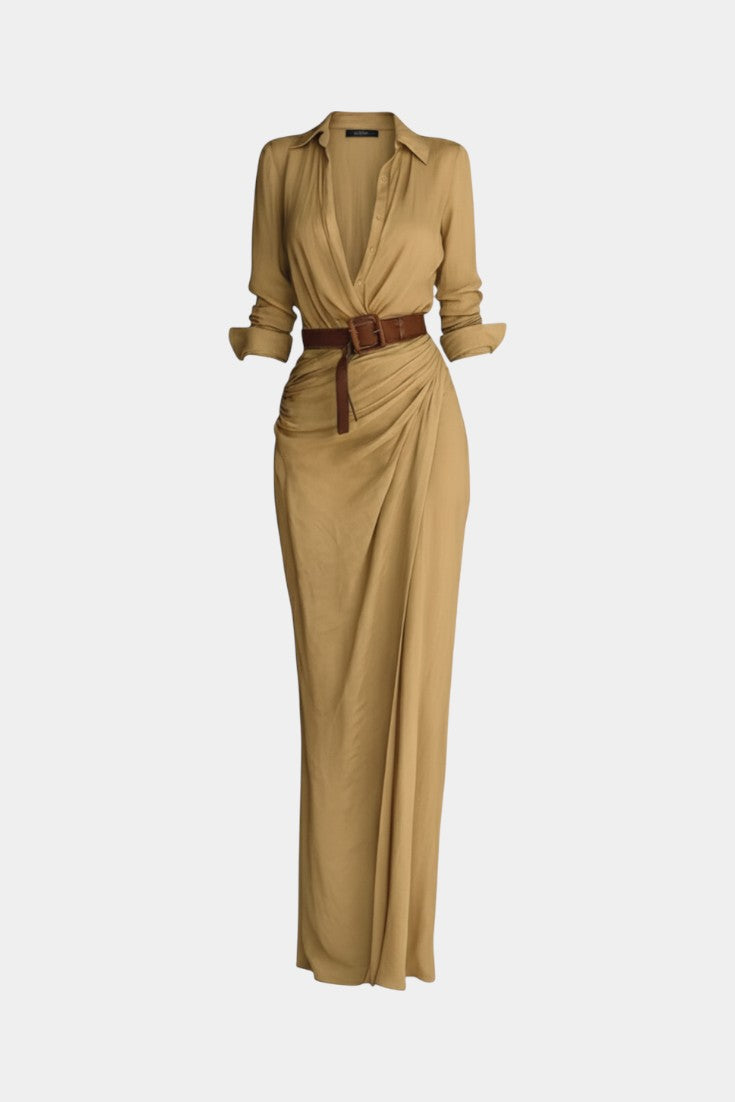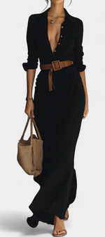 Souline Robe Maxi à Revers et Taille Ceinturée