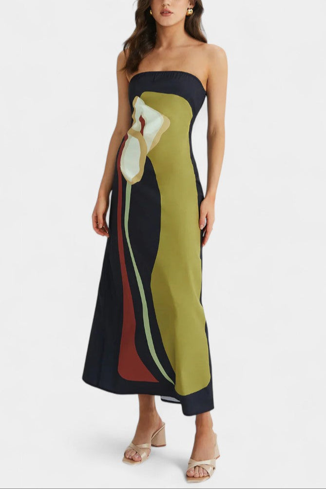 Laura Robe Maxi Sans Bretelles à Imprimé Floral Abstrait