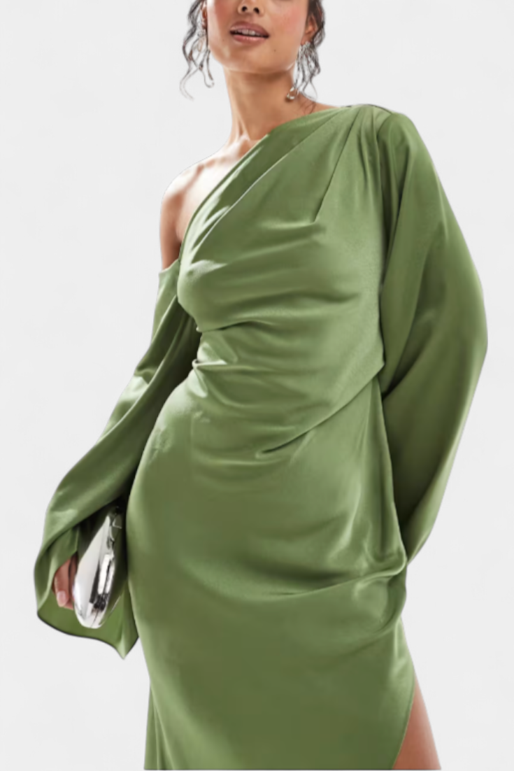 Maddie Robe Asymétrique à Une Épaule et Drapé Fluide